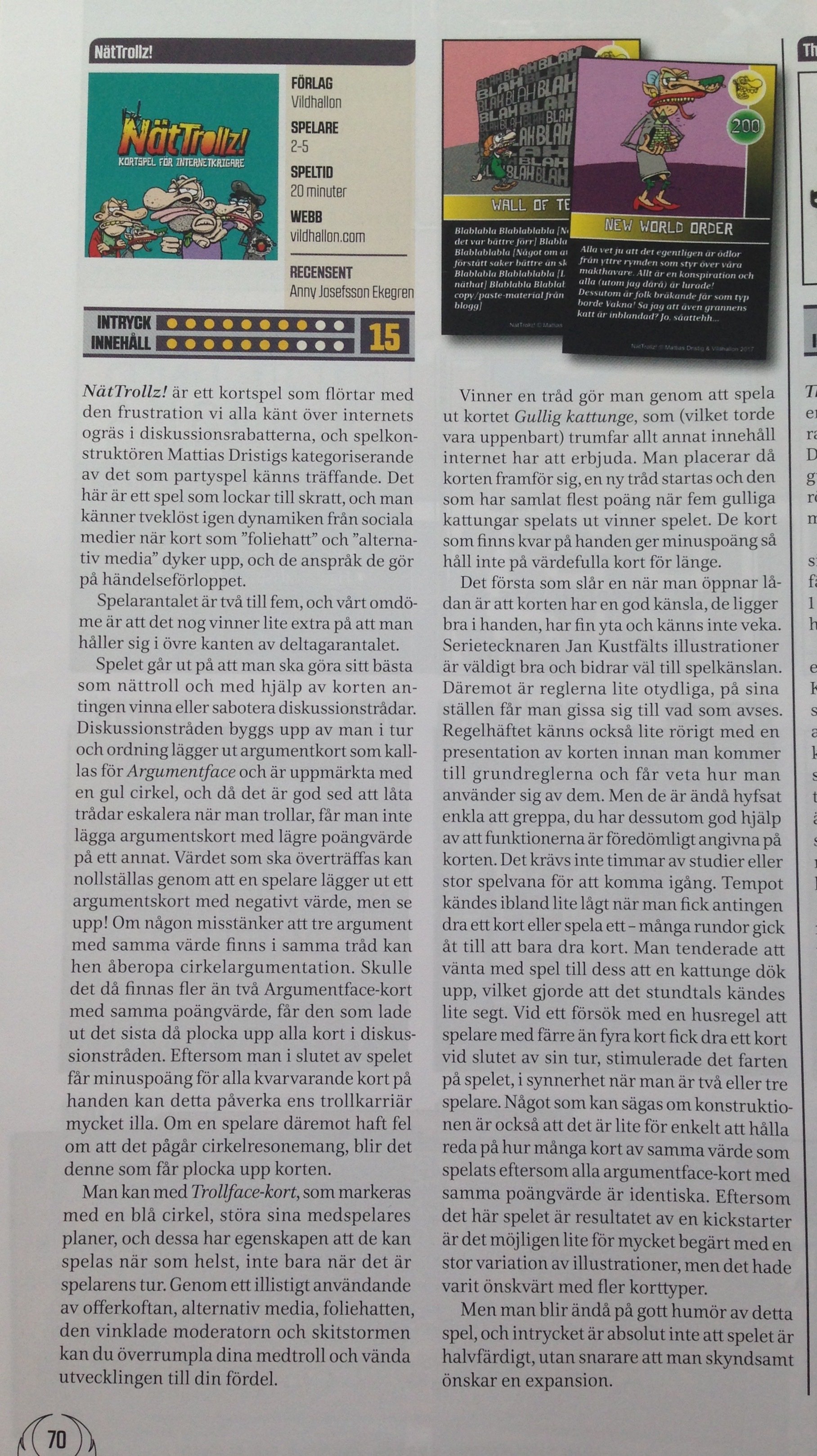 Speltidningen Fenix recenserade första upplagan av NätTrollz! i Nr 3 2018 och gav det höga betyget 15 av 20: